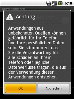 Ihr Android-Gerät ist werksseitig so konfiguriert, dass Apps nur aus "Google Play" (vorher "Android Market") installiert werden können. Um Apps aus anderen Quellen (z.B. von ComBib.de) installieren zu können, müssen Sie eine Geräteeinstellung ändern: