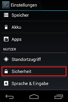 Betätigen Sie die Menüschaltfläche des Gerätes und wählen Sie den Befehl "Einstellungen". Über den Punkt "Sicherheit" gelangen Sie zur Option "Unbekannte Herkunft", die Sie aktivieren müssen: